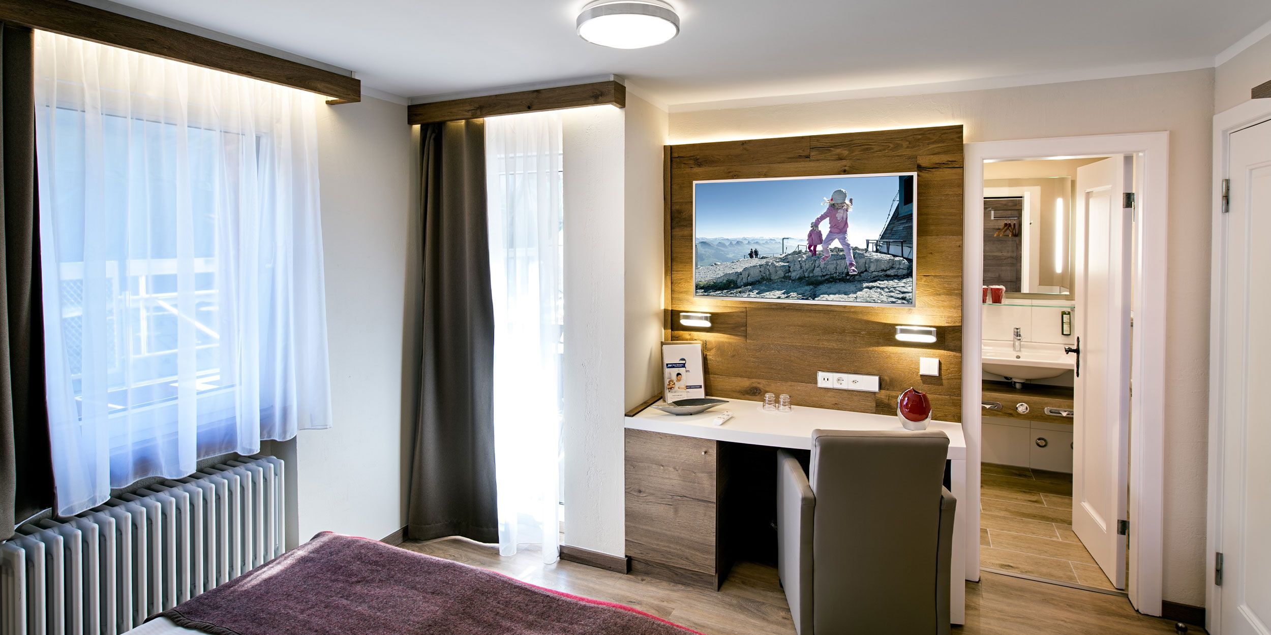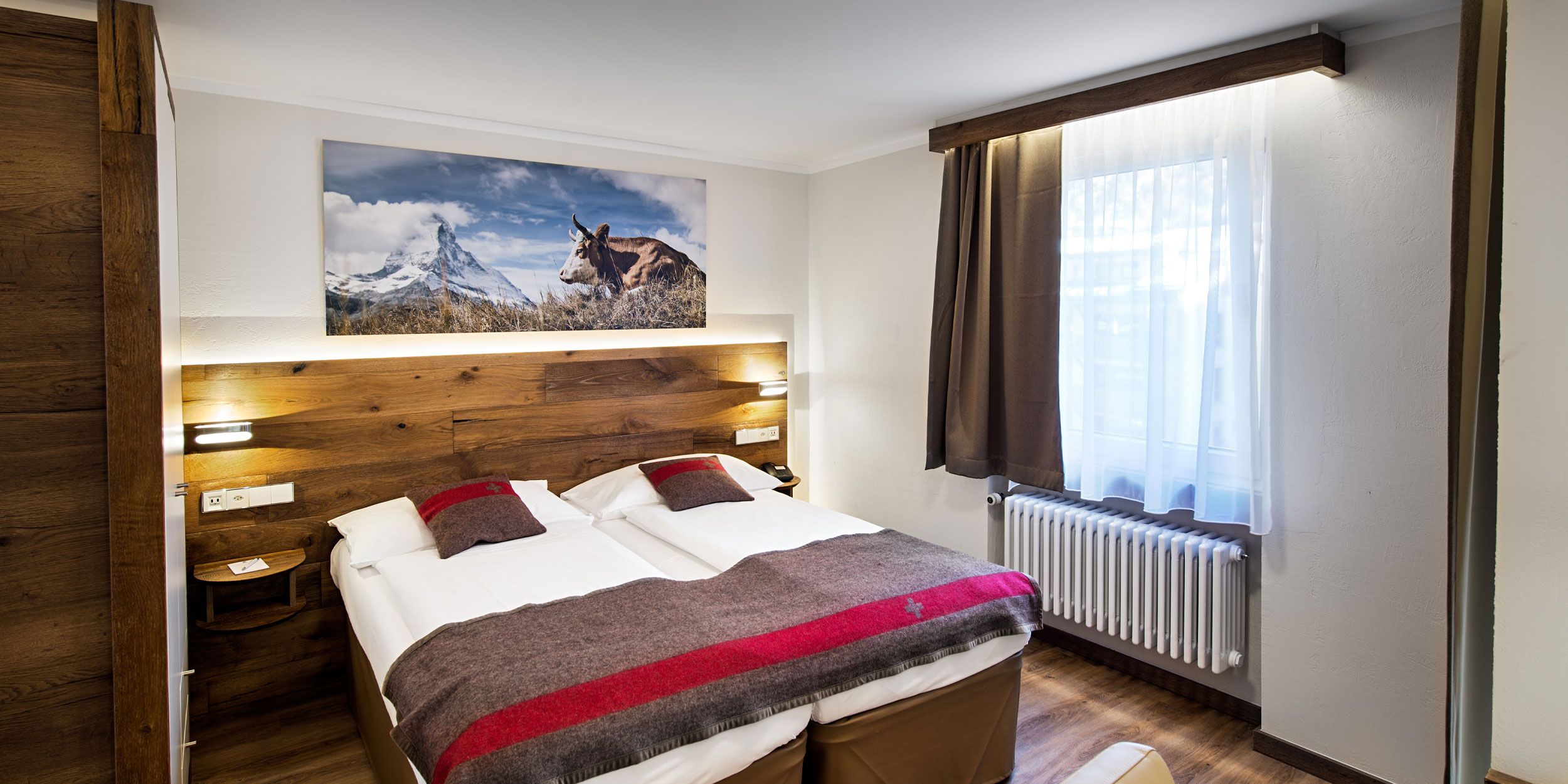 Unsere "Superior Doppelzimmer" sind die beliebteste Zimmerkategorie bei unseren Gästen – dazu noch mit dem attraktivsten Preis für Sie! Die Zimmer mit traumhaftem Bergblick und teilweise mit Balkon wurden 2018 komplett renoviert. Sie verfügen über die gleiche Ausstattung wie alle anderen Kategorien mit kostenfreiem WIFI und einem grossen Flachbild-TV. Auf dem Zimmer stellen wir für Sie kostenfrei Wasser, Tee und Kaffee bereit. Auch die Badezimmer wurden komplett renoviert. Sie finden dort WC, Fön, eine Regendusche sowie „Pure Herbs“-Pflegeprodukte. Nach einem erholsamen Schlaf stärken Sie sich am Morgen mit einem reichhaltigen und gesunden Frühstück.